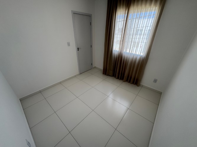 O apartamento dispõe de sala (com janela do chão ao teto, que confere uma ótima iluminação natural), 2 quartos, sendo 1 suíte (com armário no banheiro), banheiro social (com armário), cozinha (com armários planejados) integrada com área de serviço, e 1 vaga de garagem.