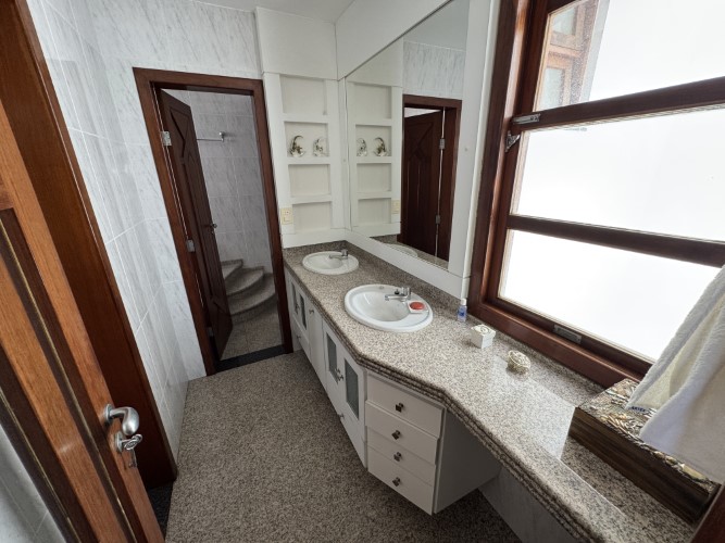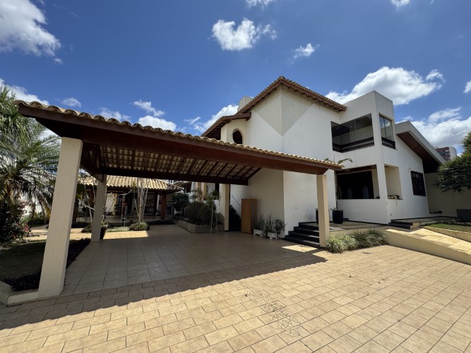 A residência impressiona pela amplitude e funcionalidade de seus ambientes. No térreo, dispõe de um belo jardim, área gourmet (com sauna), varanda, hall de entrada, sala para 02 ambientes, sala de TV (com lareira), 02 suítes, escritório, 02 áreas de luz, lavabo e espaço para roupeiro. A cozinha é acompanhada por despensa e área de serviço (com banheiro), além de um amplo quintal ajardinado, depósito, dependência (com sanitário) e 03 vagas de garagem.
