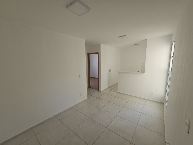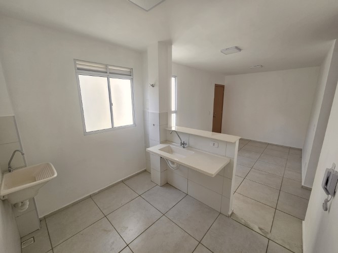 O imóvel dispõe de sala, 2 quartos, banheiro social, cozinha americana com área de serviço integrada, e 1 vaga de garagem. Os ambientes contam com boa iluminação natural e são bem distribuídos.