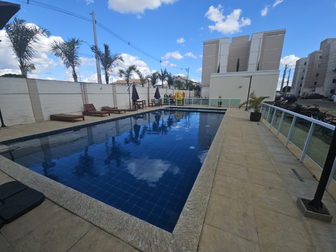 O condomínio oferece infraestrutura completa de lazer e segurança, com portaria 24 horas, piscina adulto e infantil, parque infantil e área gourmet, ideal para momentos de descanso e convivência.