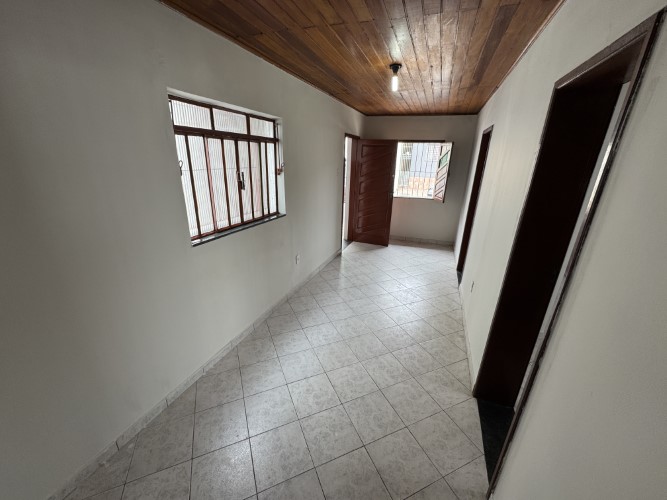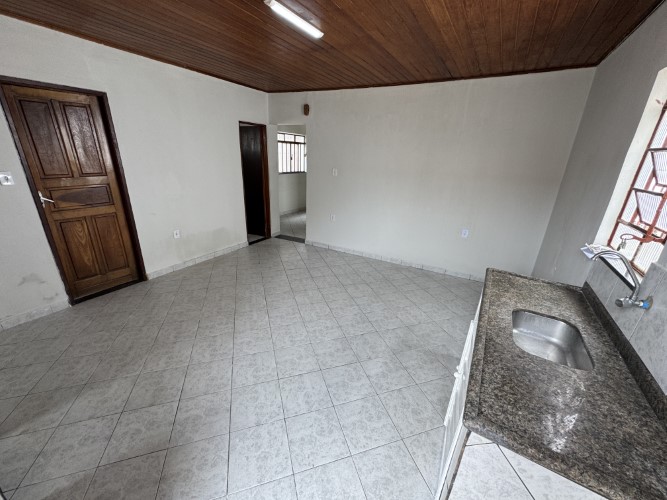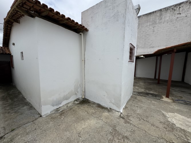 A residência dispõe de sala, 2 quartos, banheiro social (com armário), cozinha (com armário de pia) e 2 depósitos, nos fundos, há área de serviço, canil e garagem com capacidade para 2 veículos.