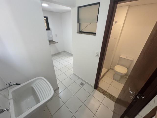 O apartamento dispõe de sala, 02 quartos, sendo 01 suíte, banheiro social (com pia externa), dependência completa (com possibilidade de adaptação para um terceiro quarto, pois conta com duas portas de acesso), cozinha, área de serviço e 01 vaga de garagem.