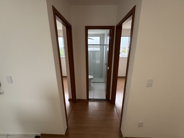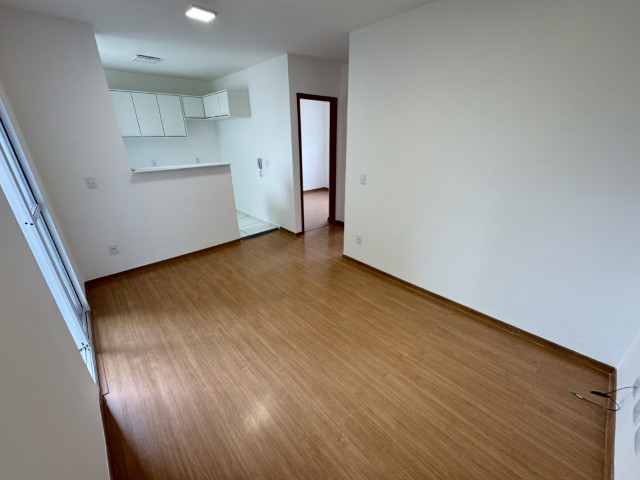 O apartamento está situado no 3° andar e dispõe de sala com acesso à varanda, 02 quartos, banheiro social com armário, cozinha americana (com armários planejados), área de serviço integrada e 01 vaga de garagem.