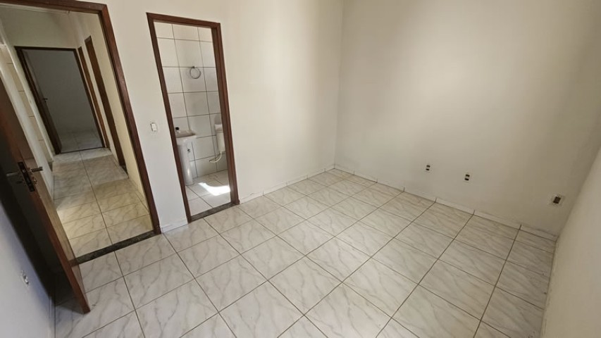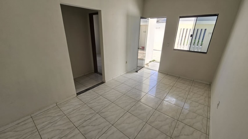 A residência dispõe de sala, 02 quartos, sendo 01 suíte, banheiro social, escritório, cozinha, quintal com área de serviço, e na área externa frontal o imóvel conta com 02 vagas de garagem.