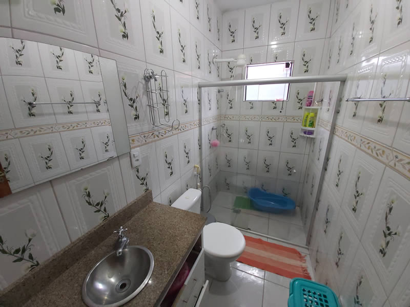 A divisão a seguir se repete tanto para o apartamento do térreo quanto no do primeiro andar: 1 suíte, 2 quartos, banheiro social, sala ampla com varanda, cozinha ampla com armários, área de serviço, 1 vaga de garagem e quintal.