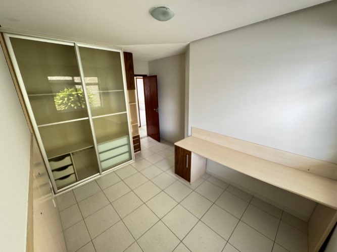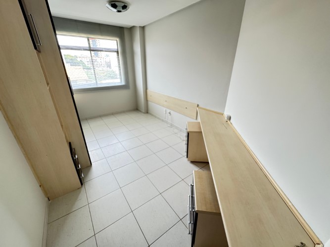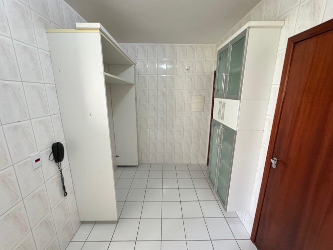 Com 100m² de área privativa, o apartamento conta com 3 quartos, sendo uma suíte, todos com armários planejados, sala espaçosa para dois ambientes, banheiro social com armário, cozinha com armários, dependência completa, área de serviço e 2 vagas de garagem. A unidade é bem arejada e recebe excelente iluminação natural em todos os ambientes.