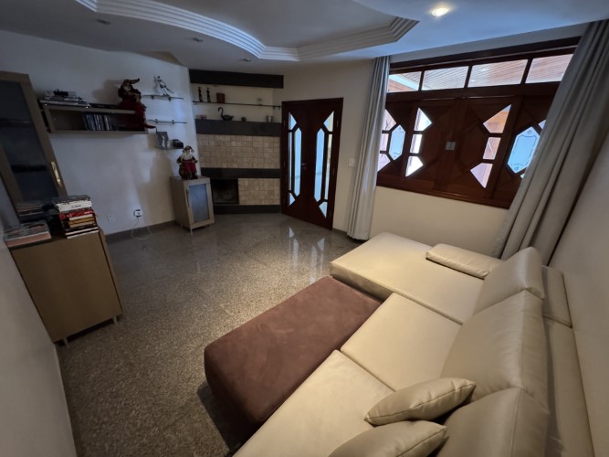 A residência impressiona pela amplitude e funcionalidade de seus ambientes. No térreo, dispõe de um belo jardim, área gourmet (com sauna), varanda, hall de entrada, sala para 02 ambientes, sala de TV (com lareira), 02 suítes, escritório, 02 áreas de luz, lavabo e espaço para roupeiro. A cozinha é acompanhada por despensa e área de serviço (com banheiro), além de um amplo quintal ajardinado, depósito, dependência (com sanitário) e 03 vagas de garagem.