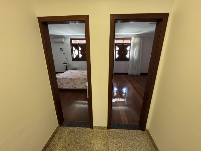 No primeiro andar, o imóvel conta com um hall de entrada espaçoso, varanda e 02 suítes, sendo uma delas com closet e varanda privativa, e a outra suite com varanda, oferecendo conforto e privacidade aos moradores.