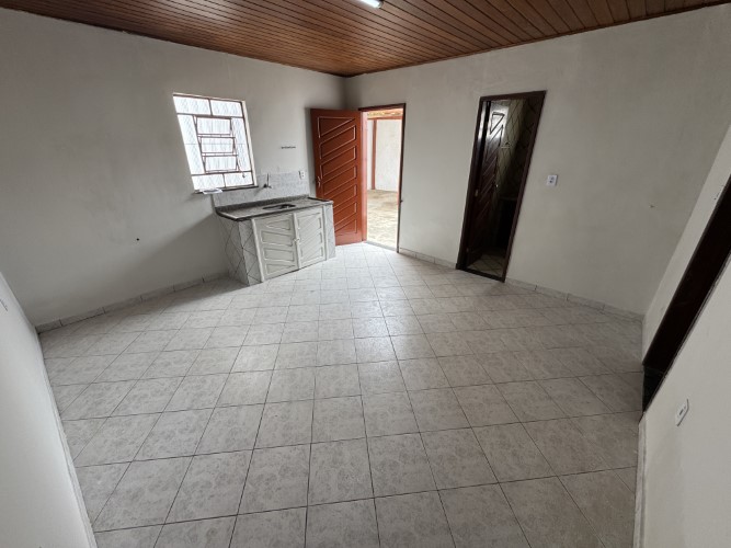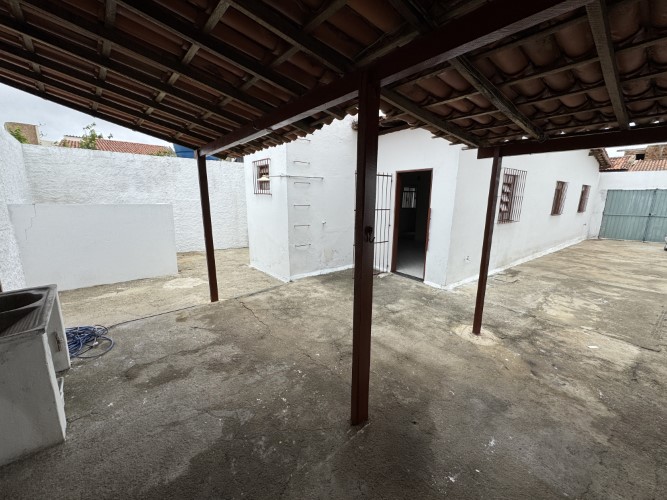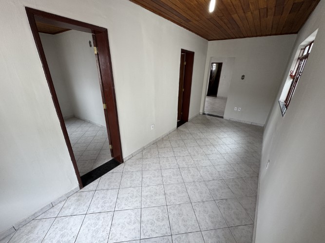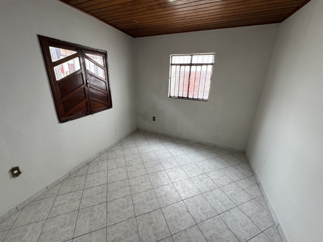 A residência dispõe de sala, 2 quartos, banheiro social (com armário), cozinha (com armário de pia) e 2 depósitos, nos fundos, há área de serviço, canil e garagem com capacidade para 2 veículos.