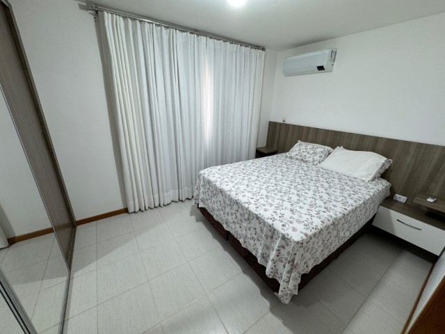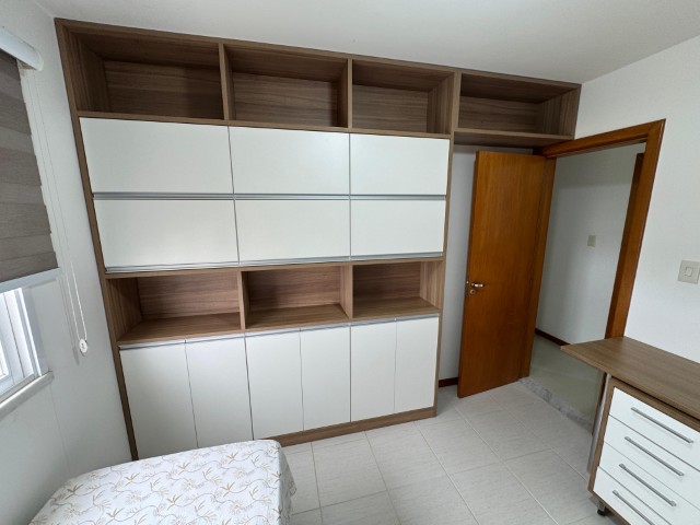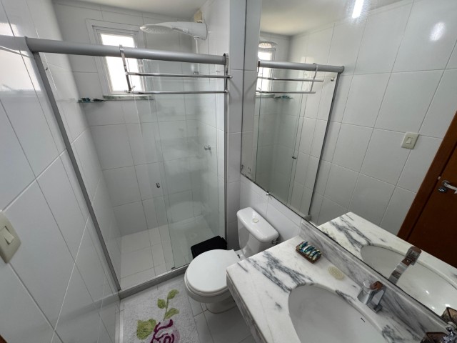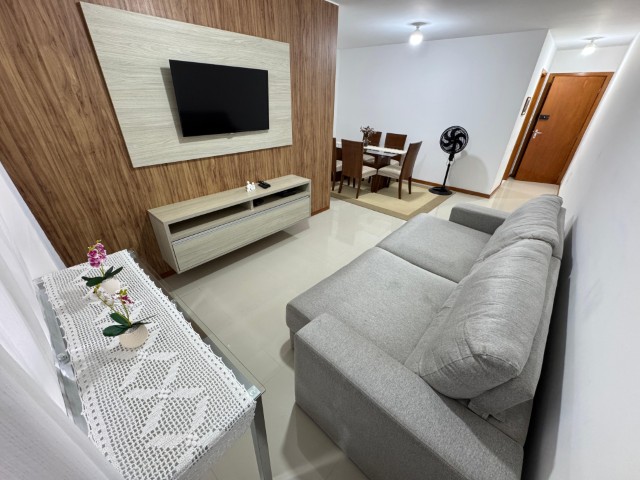 Apartamento no 7º andar, nascente, com ambientes amplos e bem distribuídos, o imóvel conta com sala para 2 ambientes com sofá, painel com TV, aparador, mesa com 6 cadeiras e ventilador; 2 quartos com armários e cama; 01 suíte com armário, cama e ar condicionado; cozinha com armários, fogão, geladeira, mesa com 4 cadeiras, microondas e sugar; banheiro social, área de serviço com lavadora, banheiro na área de serviço e 02 vagas de garagem nº 104 e 206.